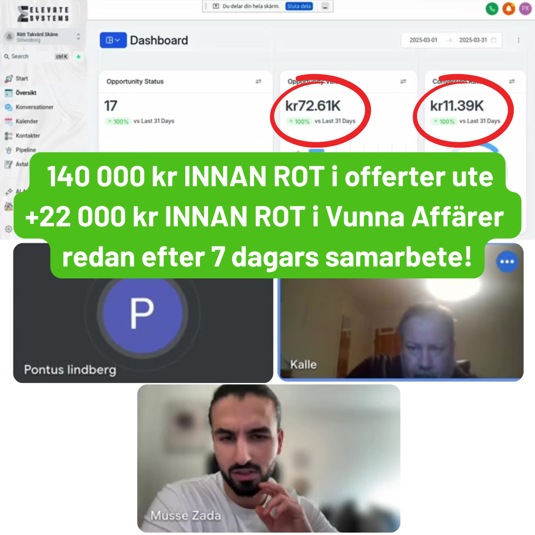 "Överträffade planerade resultatet med 150%" Med 8 st offerter ute på 1.1+ miljoner kr redan sin första månad har detta varit lyckat även för Jocke!