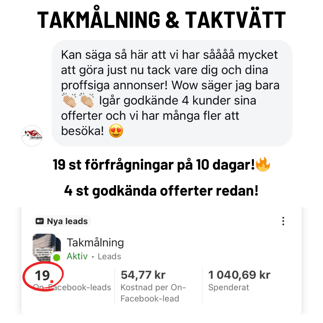 Hugo & Linus jobbar med takvård. De var nystartade och när vi fick kontakt var de skeptiska om detta med annonsering (som alla är). Efter deras första månad har de sålt 10 kunder via vårt samarbete.